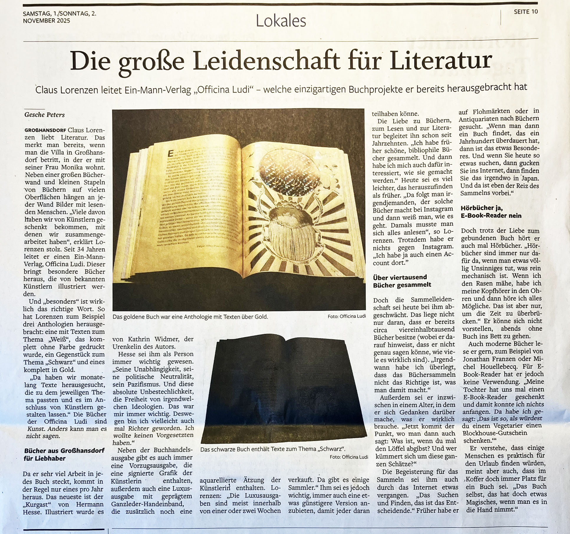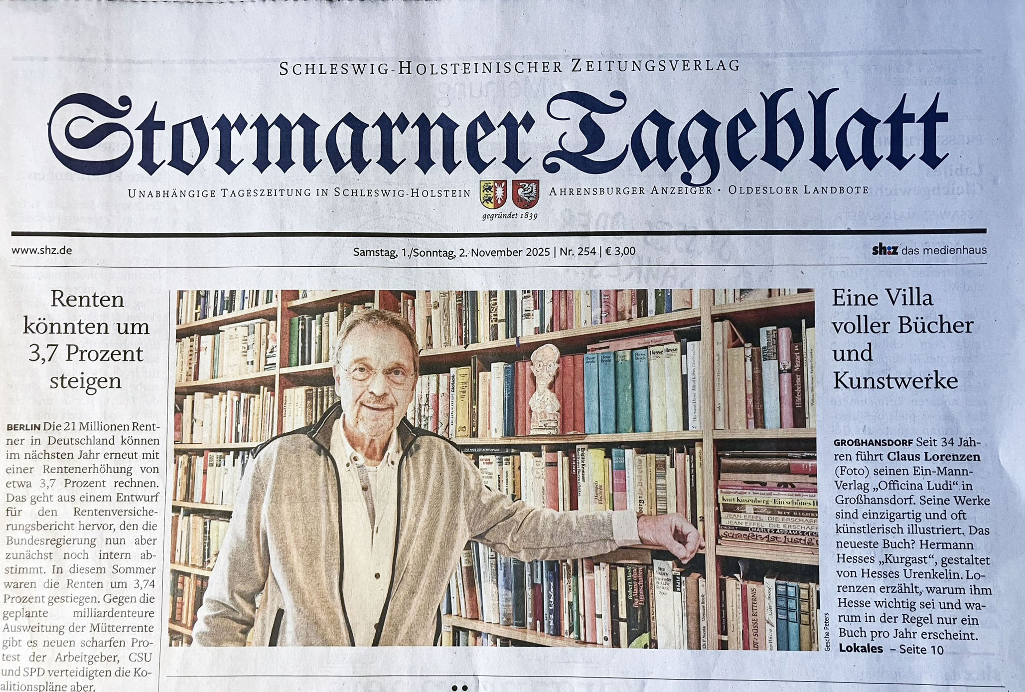 Im Stormarner Tageblatt vom 1./2. November 2025 wurde ebenfalls über die Officina Ludi und ihre Bücher berichtet.